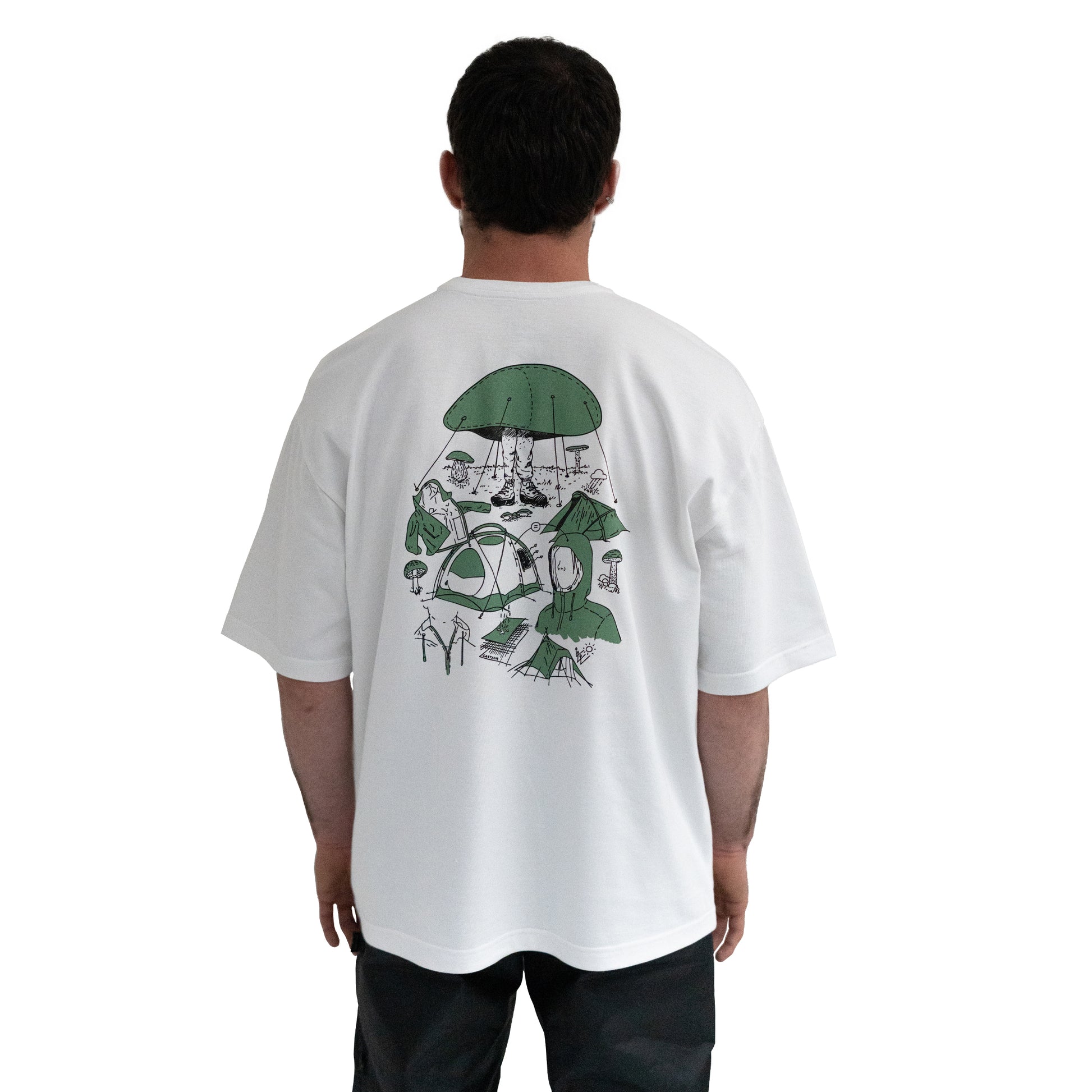 En dehors de sa forme ample et d'un design graphique unique, ce modèle de tee-shirt fait partie d'une micro série qui ne sera pas rééditée après épuisement des stocks. La logique est la même que pour le reste du vestiaire, chaque pièce est le résultat d'un millésime. C'est aussi ça, la beauté d'un cycle.