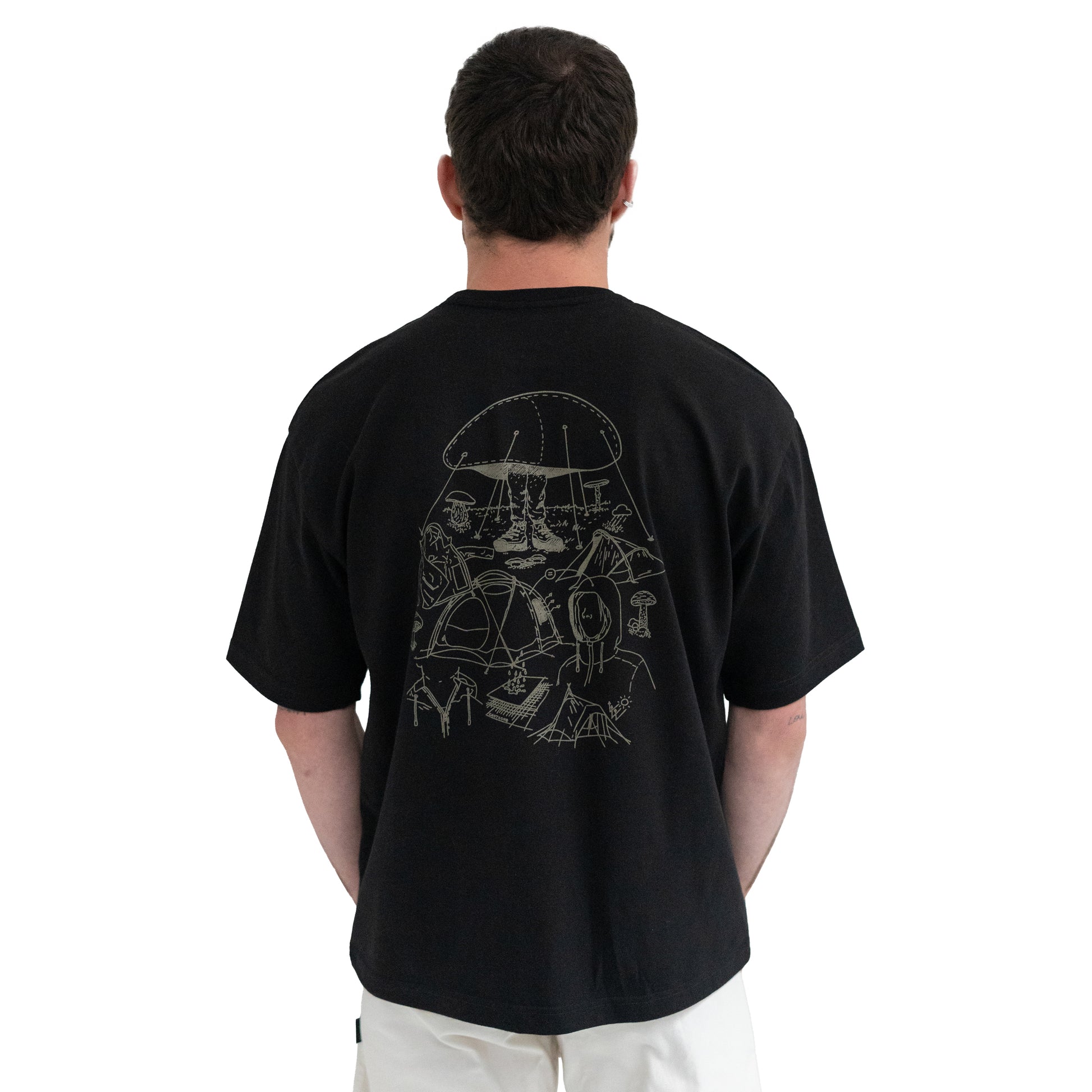 En dehors de sa forme ample et d'un design graphique unique, ce modèle de tee-shirt fait partie d'une micro série qui ne sera pas rééditée après épuisement des stocks. La logique est la même que pour le reste du vestiaire, chaque pièce est le résultat d'un millésime. C'est aussi ça, la beauté d'un cycle.